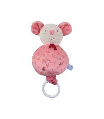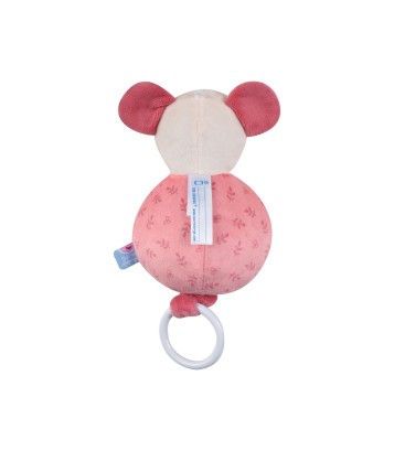 SUJET MUSICAL SOURIS VELOURS DOUX "Boite à musique Souris Sucre d'orge rose. Détails produit : Sujet Souris tout doux. Lavable en machine - mécanisme de la boite à musique étanche. Composition : Extérieur velboa 100% polyester. Intérieur fibre 100% polyester. Dimensions : Longueur : 23 cm. "
