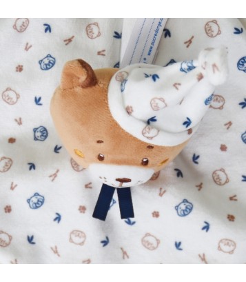 Doumou attache-tétine ours souple pour bébé fille ou garçon. Son corps plat, facilite la prise en main, et son noeud sur un des angles, en fait un allié pratique puisqu'on peut y nouer la sucette de bébé, pour l'avoir toujours à portée de main. Un corps Imprimé, avec le dessous marron. Hauteur : 23 cm environ. Composition : velboa 100% polyester - intérieur fibres polyester.