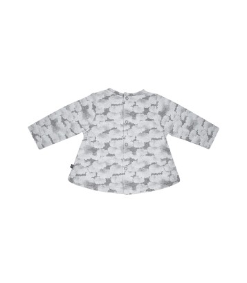 Ensemble fille Sucre d'Orge Tshirt et pantalon modèle Mauricette. Tshirt jersey manches longues gris imprimé nuages, col rond, découpes devant ornées d'un galon brodé fuschia - ouverture dos pressionnée. Pantalon molleton fuschia, taille élastique, 2 poches devant, fausse braguette. Composition : Tshirt 50% coton 46%polyester 4%élasthane, pantalon molleton 96% coton 4% élasthane. Existe du 3 mois au 24 mois.