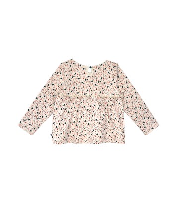 Tunique Meredith Sucre d'orge réalisé dans un Interlock imprimé marine et bordeau sur un fond écru. Encolure ronde fermée au dos par un bouton, manches longues, volants aux empiècements devant et le dos. Boutons soulignant les découpes devant. Composition : 100% coton. Existe du 3 ans au 10 ans.