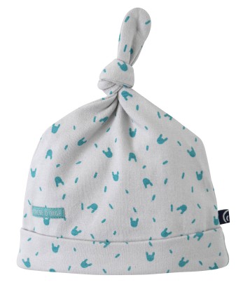 BONNET APOLLINAIRE MOLLETON Bonnet Sucre d'Orge en molleton 96% coton 4% élasthanne gris/turquoise idéal pour la maternité. Existe en 0/1 mois (tour de tête 37-40 cm) et en 3/6 mois (tour de tête 43-45 cm).