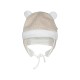 Bonnet Sucre d'Orge modèle Isaline à petites oreilles pour le côté ludique, molleton beige doublé jersey écru, avec liens à nouer. De forme bien couvrante, ce bonnet saura accompagner manteaux et blousons. Composition : Dessus 63% polyester 35% coton 2% élasthane Dessous 100% coton. Existe en 0/1 mois - 3/6 mois - 12/18 mois et 2/3 ans.
