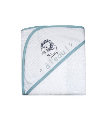 CAPE DE BAIN ORELIEN EPONGE Cape de bain Orélien blanche Sucre d'orge Détails produit : Capuche doublée dessus jersey imprimé lion dans une bouée. Présentée en coffret cadeau. Composition : Eponge 95% coton 5% polyester - jersey 100% coton. Dimensions : 78 X 80 cm.