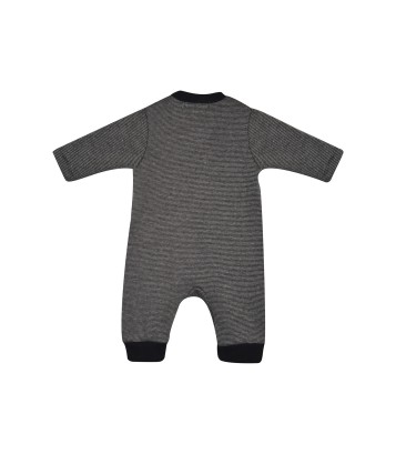 COMBINAISON BEBE FLORENT Combinaison Florent Sucre d'Orge. Détails produit : Combinaison en molleton anthracite rayé écru intérieur peluche. Applique poitrine - Poches fantaisie. Ouverture intégrale devant par zip et entrejambe par boutons-pression. Composition : Molleton rayé : 35% coton 2% élasthanne 63% polyester. Empiècement poches 100% coton. Tailles : Du 1 au 12 mois.