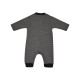 Combinaison bébé Florent Sucre d'Orge. Combinaison en molleton anthracite finement rayé d'écru intérieur peluche manches longues encolure ronde bas de jambe finition bord-côte. Applique poitrine tête d'ourson et poches fantaisie. Cette combinaison s'ouvre intégralement devant par zip - protection menton - et par boutons-pression à l'entrejambe. Composition : 35% coton 2% élasthanne 63% polyester Empiècement poches 100% coton. Existe du 1 au 12 mois.