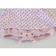 Combirobe 2 en 1 Sucre d'Orge du thème POMME D'AMOUR. Dessus, robe en imprimé rose et blanc avec, dessous une combinaison bloomer rose. Ouverture au dos et à l'entrejambe par boutons pression pour faciliter le change de bébé. Cette combirobe dans l'esprit très layette est idéale pour le confort des bébés filles. Le + : l'inscription Bel été rapportée et brodée avec un fil brillant du plus bel effet ! Composition : jersey 100% coton. Existe de la taille 1 mois au 12 mois.