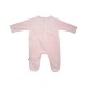 Pyjama bébé Sucre d'Orge modèle Liberte coloris rose avec un texte Mini avec illustration d'un koala et d'un zèbre caché dans le M. Ouverture pont dos pressionnée. Composition : velours rasé 75% coton 25% polyester. Existe de la taille 3 mois au 24 mois.