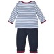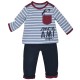 ENSEMBLE PANTALON ET TEE SHIRT GARCON Ensemble pantalon et tee shirt Sucre d'Orge. Tee shirt rayé 100% coton - ouverture sur les épaules. Pantalon velours marine 70% coton 2% élasthanne 28% polyester doublé 100% coton. Ceinture ajustable et fermeture par bouton pression. Existe de la taille 3 mois au 24 mois.