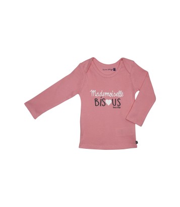 Lot de 2 T-shirts maillots de corps modèle Forsalezia Sucre d'orge. T-shirts manches longues, encolure américaine. 1 maillot de corps rose uni message poitrine "Mademoiselle Bisous", 1 maillot blanc imprimé anthracite. Composition : 100% coton. Existe du 12 mois au 24 mois.