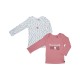 LOT 2 MAILLOTS DE CORPS FILLE FORSALEZIA Lot de 2 T-shirts maillots de corps Forsalezia Sucre d'orge Détails produit : 1 maillot rose message poitrine. 1 maillot blanc imprimé anthracite. Manches longues - encolure américaine. Composition : 100% coton. Taille : Du 12 au 24 mois.