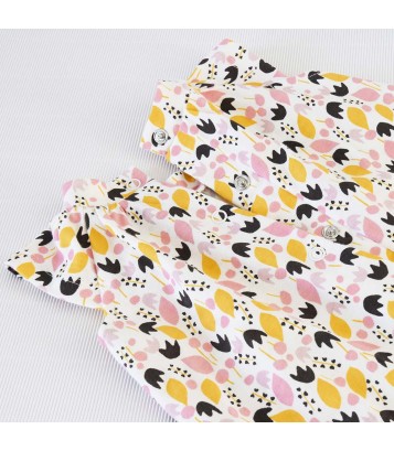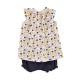 ENSEMBLE ROBE+BLOOMER CORALINE Ensemble robe bloomer Sucre d'Orge Détails produit : Robe imprimée en jersey, fronces sous encolure ronde, petites manches courtes, ouverture au 3/4 dos par boutons-pression. Culotte bloomer anthracite, taille élastiquée, bas de jambes élastiqués et volantés. Composition : Ensemble 100% coton. Tailles : Du 1 mois au 18 mois.