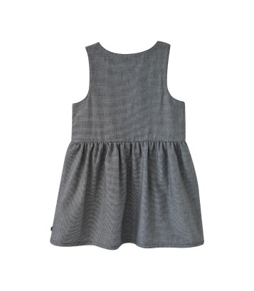 ROBE PIED DE POULE DELVINA Robe pied de poule anthracite doublée marque Sucre d'Orge modèle Delvina Détails produit : Imprimé micro pied de poule. Doublée entièrement. Encolure ronde ouverte par patte de boutonnage déportée côté devant. Sans manches. Fronces sous empiècement poitrine. Broderie poitrine. Composition : Dessus et dessous 100% coton Tailles : Du 2 au 8 ans.