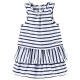 Robe sans manches Sucre d'Orge en jersey 96% coton 4% élasthanne. Ouverture au dos par goutte boutonnée. Jeux de rayures sur les différents volants qui donnent une belle amplitude à cette petite robe d'été. Existe de la taille 2 ans au 8 ans.