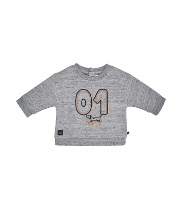 Sweat et pantalon bébé Sucre d'Orge modèle Martin. Sweat - manches longues gris chiné, ouverture par boutons-pression au dos. Illustration brodée devant "01" et un petit chien sur une skateboard. Pantalon coloris anthracite monté sur taille élastique - 1 poche sur chaque coté des jambes. Un ensemble tout confort pour les bébés garçons !. Composition : Sweat cotes 64% coton 4 % élasthanne 32% polyester, sweat 66% coton 34%polyester, pantalon 100% coton. Existe du 3 mois au 24 mois.