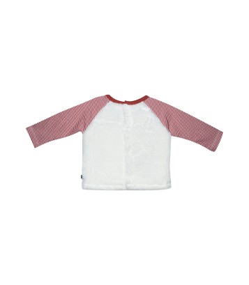 T-SHIRT + PANTALON BEBE FOOTING Ensemble T Shirt pantalon modèle Footing marque Sucre d'Orge Détails produit : T shirt bi-matière, manches longues en jersey, corps en velboa écru, ouvert au dos par boutons-pression, encolure ronde, coloris rayé écru / brique pour les manches et écru pour le corps, illustration brodée devant. Pantalon molleton coloris brique, taille élastique, 2 poches plaquées sur le devant. Composition : T shirt jersey rayé 100% coton velboa uni 100% polyester. Pantalon molleton 96% coton 4% élasthanne. Tailles : Du 3 mois au 24 mois.