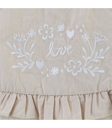 T-shirt jersey et robe toile Sucre d'Orge. Robe sans manches beige. Fronces sous empiècement poitrine, sous volant, ouverture mi-dos par boutons-pression - belle broderie à l'ancienne sur le devant. T-shirt manches courtes blanc, ouverture dos par boutons-pression. Un ensemble chic pour les cérémonies de l'été ! Composition : Ensemble 100% coton. Existe du 3 mois au 24 mois.