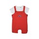 TSHIRT SALOPETTE LEONARD MAILLE COURT BEBE "Ensemble t-shirt salopette Sucre d'Orge modèle Leonard Détails produit : Tee shirt blanc, col rond et manches courtes, ouverture dos par boutons-pression. Salopette rouge, ouverture bretelles et entrejambe par boutons-pression, réglage pour les bretelles. Composition : T-shirt : 100% coton, salopette 100% coton et bord-côtes 97% coton 3% élasthanne. Tailles : Du 3 mois au 18 mois."
