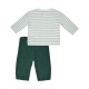TSHIRT PANTALON MILAN MAILLE Ensemble t-shirt pantalon Sucre d'Orge modèle Milan. Détails produit : Tshirt écru rayé gris, manches longues, encolure ronde, ouverture dos pressionnée. Pantalon vert, taille élastique, fausse braguette ornée d'un bouton, 2 poches. Composition : Tshirt 100% coton - pantalon 100% coton. Tailles: Du 3 au 24 mois.