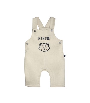 T shirt et salopette maille garçon Sucre d'orge modèle Marceau. T-shirt manches longues blanc à rayures noires, encolure ronde et ouverture dos pressionnée. Salopette beige , ouverte bretelles et broderie renard sur le devant avec une fausse poche écrit dessus "Mini" au centre - bretelles réglables - ouverture à l'entrejambe par boutons-pression. Composition : T-shirt 100% coton, salopette dessus 18% coton 1% élasthanne 81% polyester dessous 100% coton. Existe du 1 mois au 12 mois.
