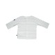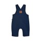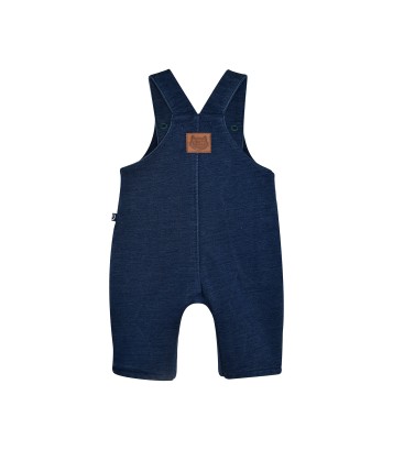 Ensemble t-shirt et salopette modèle Matteo Sucre d'Orge. T-shirt écru avec des rayures grises, manches longues, ouvert au dos par boutons-pression. Salopette marine - poche bavette brodée "trop chou" - bretelles pressionnées - ouverture entrejambe pressionnée. Une salopette bien enveloppante pour bébé et plus grand ! Composition : T-shirt 100% coton, salopette dessus 96% coton 4% élasthanne dessous 62% coton 38% polyester. Existe de la taille 1 mois au 18 mois.