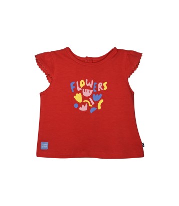 TSHIRT JUPE LANAE BEBE "Ensemble jupe t-shirt Sucre d'Orge modèle Lanae Détails produit : Jupe colorée avec legging rouge intégré, taille plate élastiquée. T-shirt rouge, encolure ronde, manches froncées sur les épaules, illustration fleurs et texte ""Flowers"", ouvert dos par boutons-pression. Composition : Ensemble 100% coton. Tailles : Du 3 mois au 24 mois."