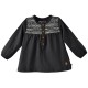 TUNIQUE BERTELINE LOOK CHIC ET MODE Tunique manches longues modèle Berteline Sucre d'orge Détails produit : Coloris gris, avec plastron floqué de motifs blancs Col rond Fronces sous empiècement, devant et dos Patte de boutonnage milieu devant. Bas de manches élastiqués. Composition : Interlock 100% coton Tailles : du 2 au 8 ans