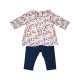 Ensemble bébé fille Glawdys Sucre d'orge. Tunique toile imprimée feuillages blanche à dominantes rose beige tomette et marine, encolure ronde soulignée d'une collerette, manches longues, fronces sous empiècement, ouverture dos pressionnée, toute doublée de toile blanche. Jegging maille fantaisie marine, ceinture élastique, 2 poches enrichies de noeuds assortis. Une paire de chaussettes assorties complète la tenue. Composition : Tunique dessus 100% coton dessous 100% coton - Jegging 100% coton - Chaussettes 80% coton 3% élasthane 17% polyamide. Existe du 1 mois au 12 mois.